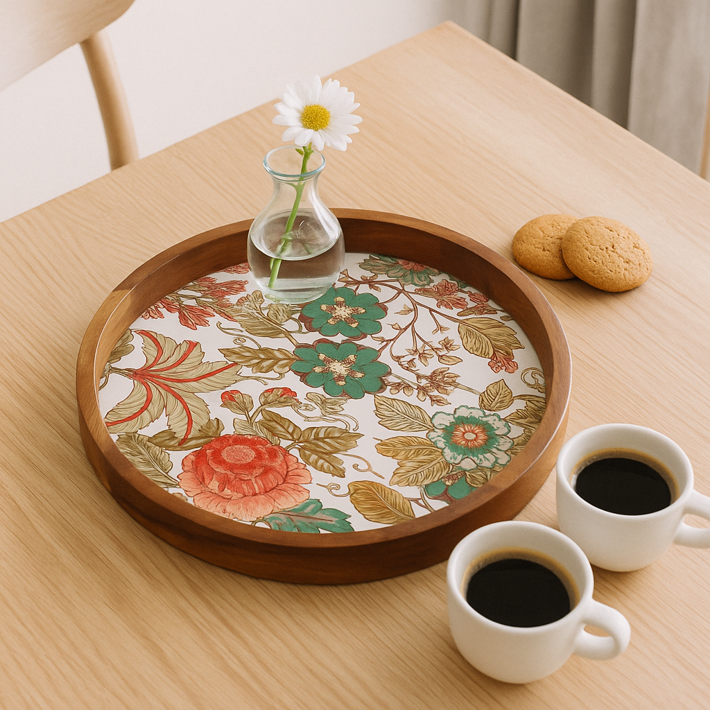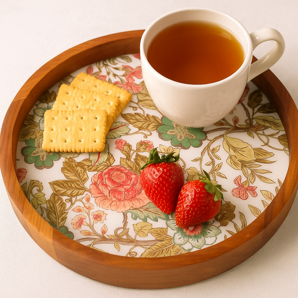 Bring timeless elegance to your home with this handcrafted wooden resin inlay round serving platter – a unique piece that blends artistry with function. Carefully made by skilled artisans, this decorative tray is perfect for serving tea, coffee, snacks, cheese, or desserts while also doubling as a stunning centerpiece for your dining table or coffee table décor.