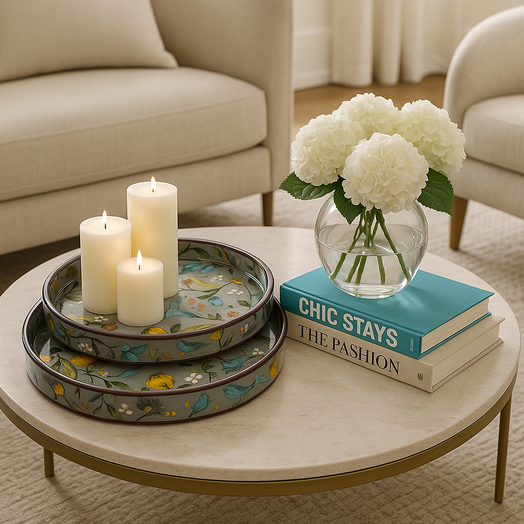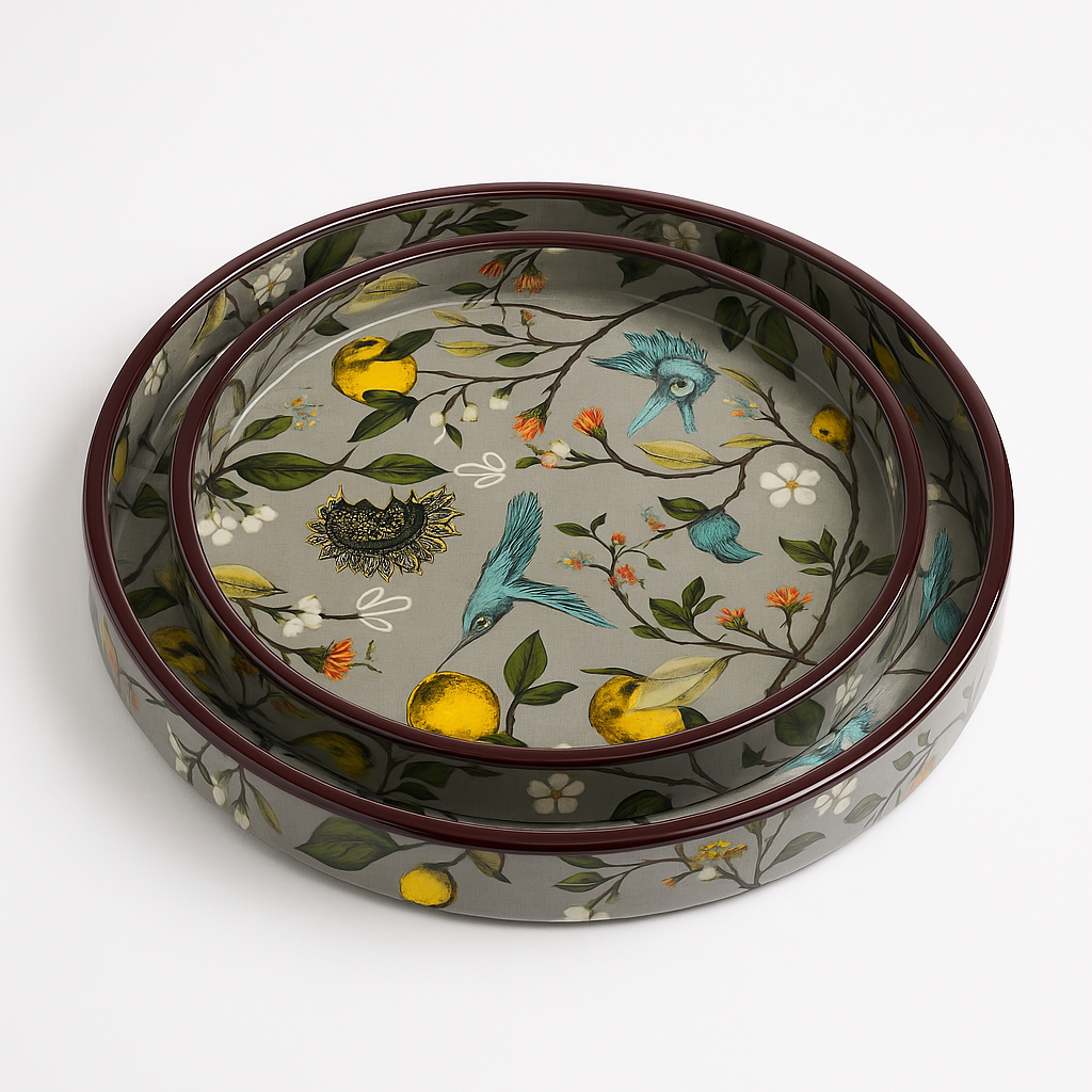 Bring warmth, artistry, and timeless charm to your home with this handmade wooden inlay tray platter — a perfect blend of craftsmanship, creativity, and functionality. Each tray is carefully handcrafted from high-quality wood and detailed with intricate inlay work and a hand-painted resin bird design, making it a true one-of-a-kind piece.