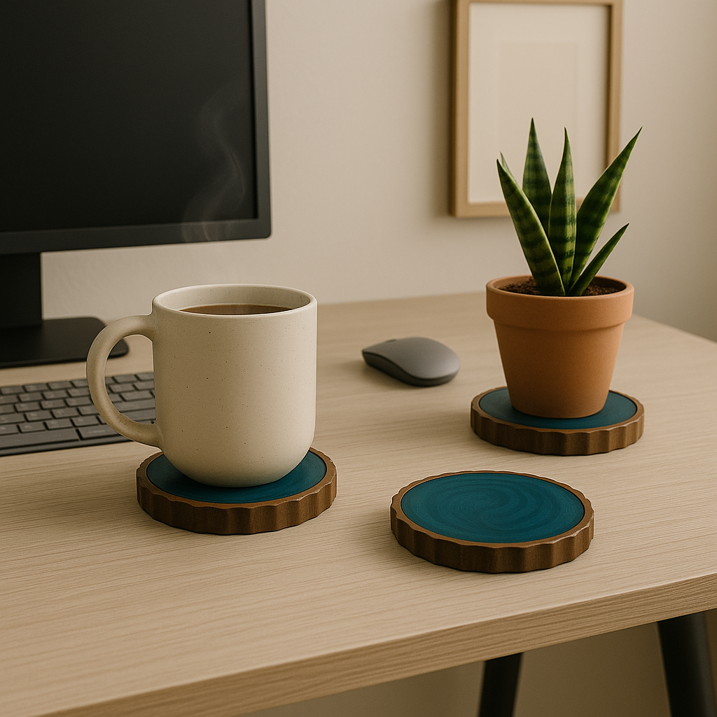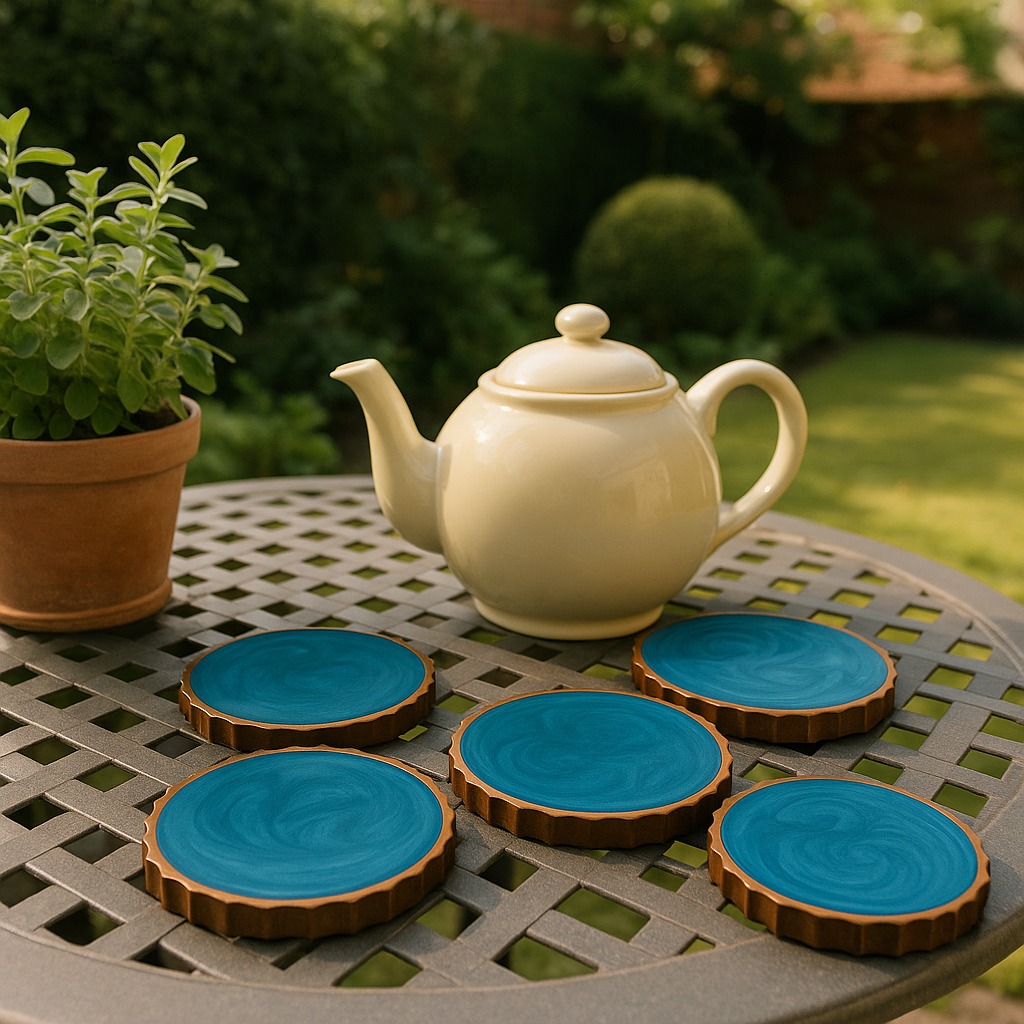 These Tea Resin Blue Wooden Coasters are more than functional — they’re pieces of art. Their deep ocean-blue swirls and warm wooden base create a calming, coastal-inspired vibe, adding sophistication and creativity to your home.