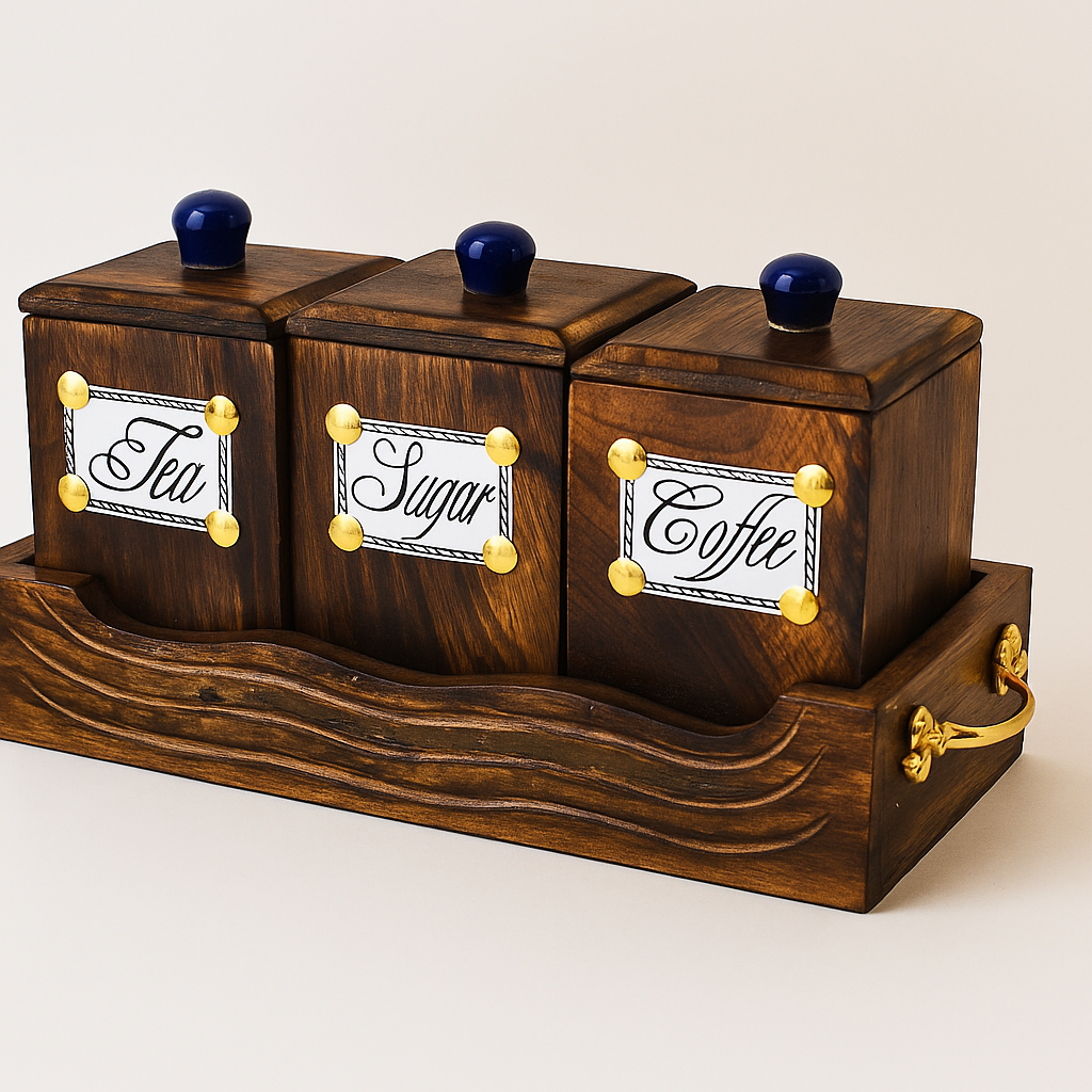 Add a touch of elegance and sustainability to your kitchen today with this handmade wooden tea, coffee, and sugar storage set β a blend of natural design, timeless beauty, and everyday functionality.